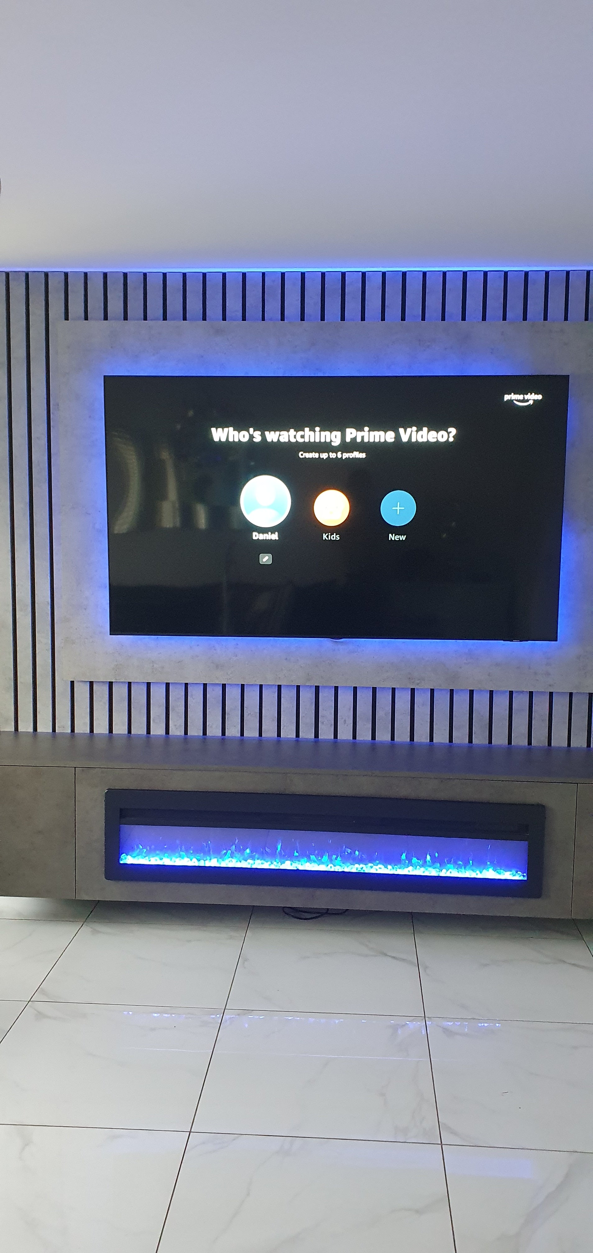 Installation of Your Custom Media Wall: Our engineers will set up the floating fireplace, TV panel, storage units, and LED lighting, ensuring every element is securely installed and functioning as it should.