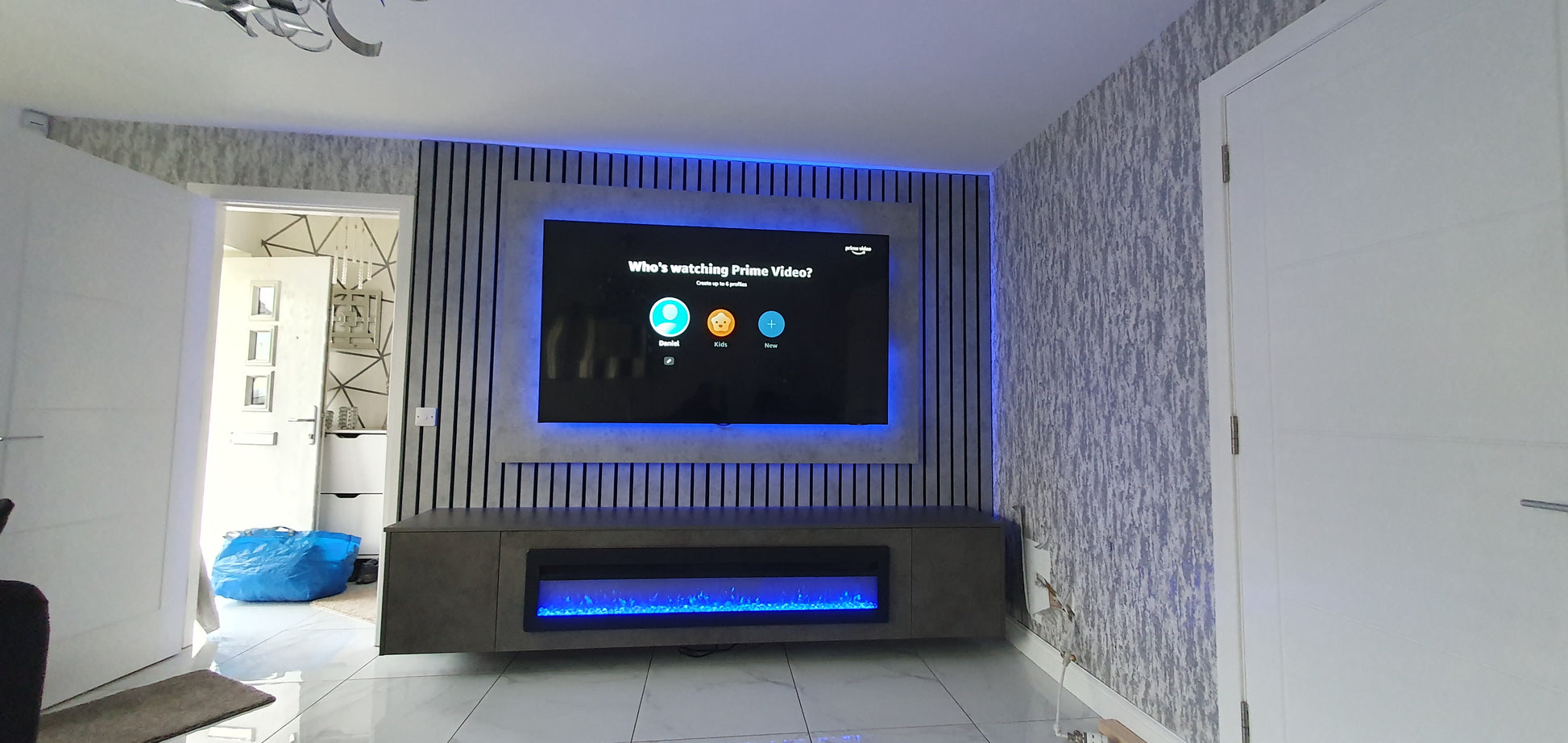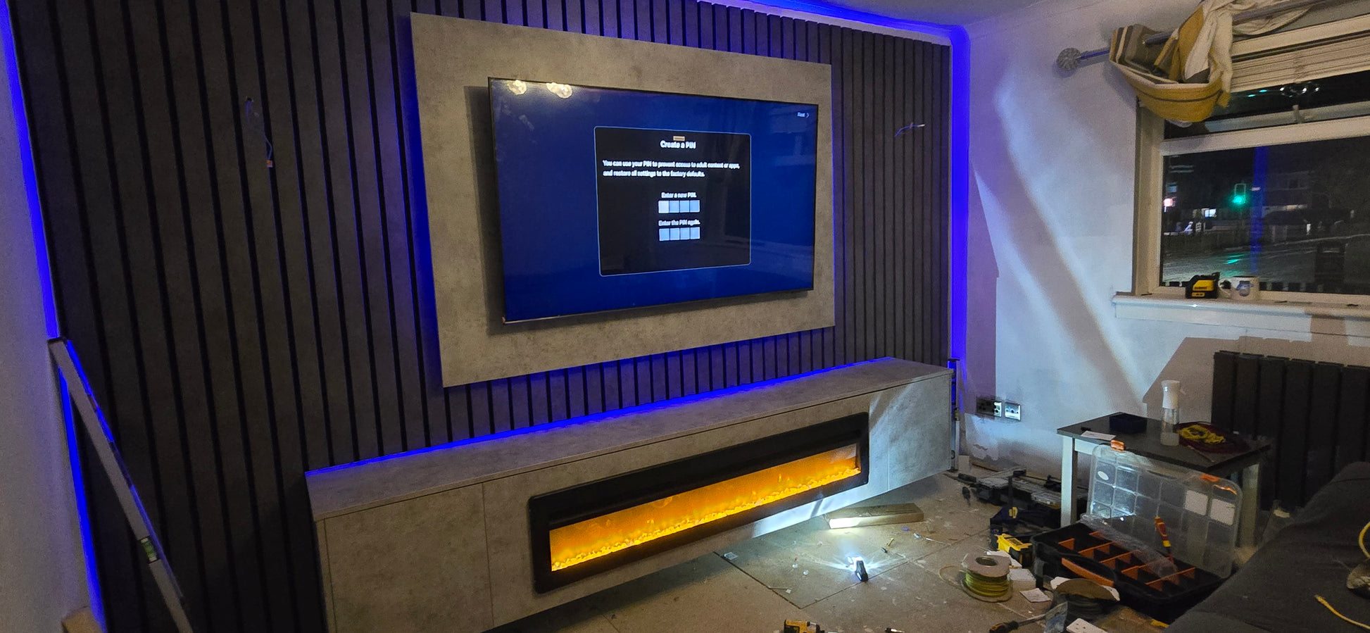 Cable Routing and Hidden Wiring: All cables will be neatly hidden behind the wall for a clean and minimal look. We’ll make sure that your TV, fire, and devices are connected seamlessly.